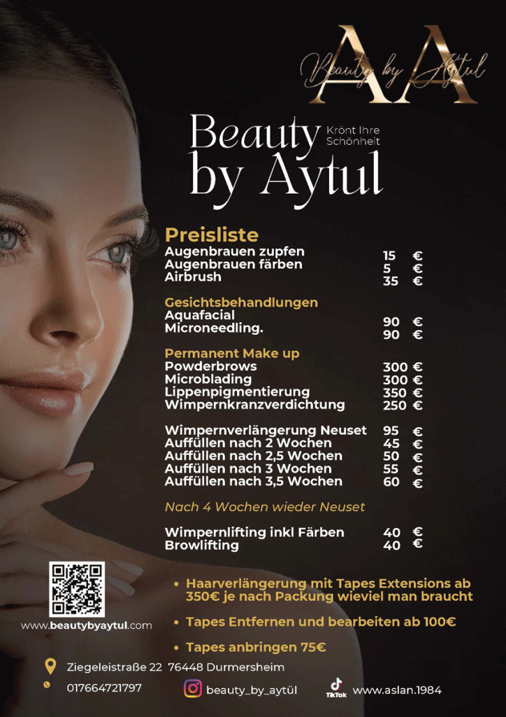 Beauty by Aytul bietet hochwertige Gesichtsbehandlungen, Permanent Make-up, Wimpernverlängerung und professionelle Waxing-Services. Mit modernster Technik, höchster Hygiene und persönlicher Beratung sorgen wir dafür, dass Sie sich von Kopf bis Fuß schön fühlen.